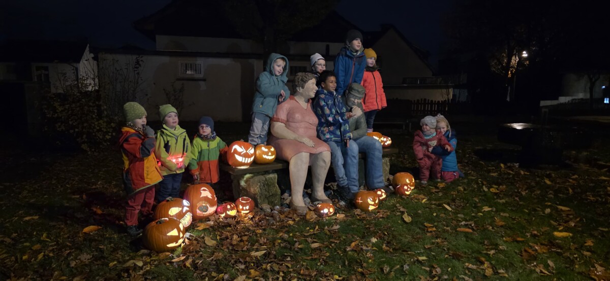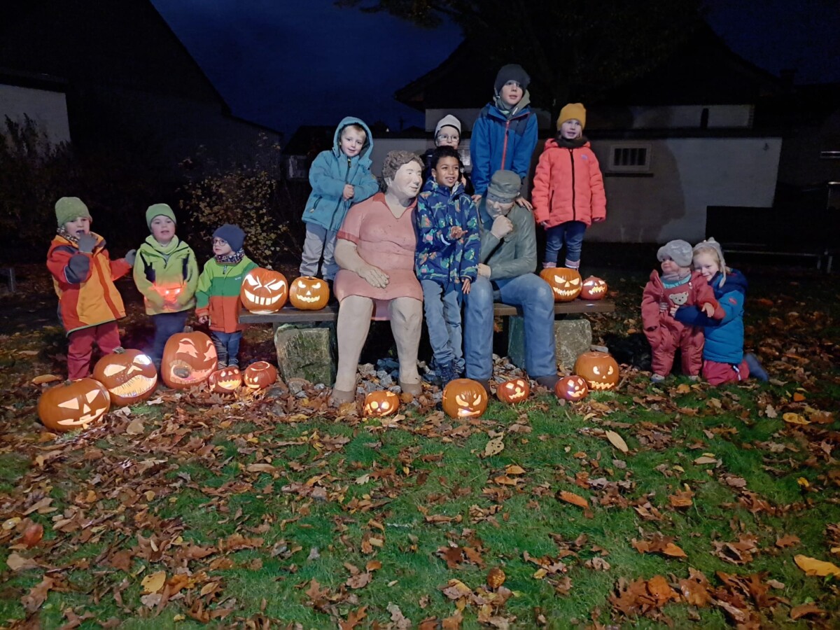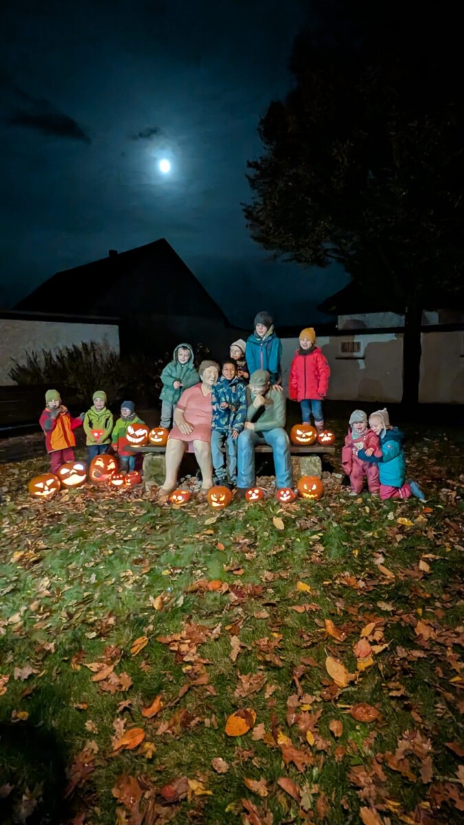 Nach dem Schnitzen ging’s auf eine kleine Wanderung, bei der die leuchtenden Kürbisse bestaunt wurden – ein echtes Highlight für alle!