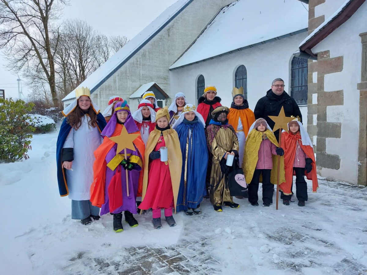 Am 04.01.2026 hat die Sternsingeraktion in Brilon-Wülfte stattgefunden. Insgesamt sind 13 Kinder und Jugendliche durch die Straßen gezogen und haben an den Häusern den Segen verteilt. In diesem Jahr werden die Geldspenden für den Kampf gegen Kinderarbeit in Bangladesch eingesetzt. Noch immer ist es in diesem Land so, dass Kinder arbeiten müssen anstatt eine Schule besuchen zu können.