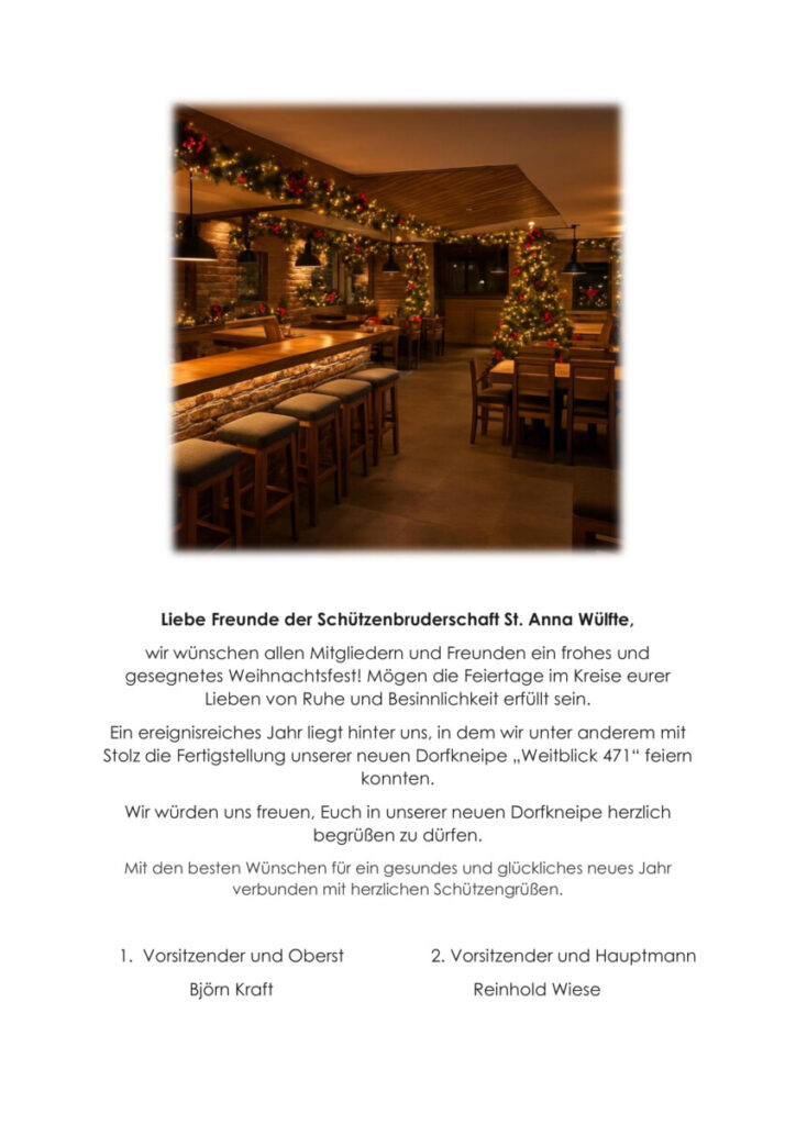 Weihnachtsgruß Schützenbruderschaft St. Anna Wülfte 2025