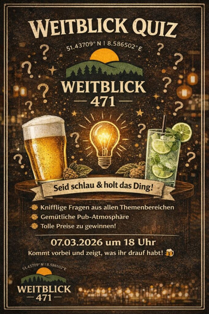 Am 07.03.2026 um 18 Uhr wird im Weitblick 471 gerätselt, gelacht und angestoßen.